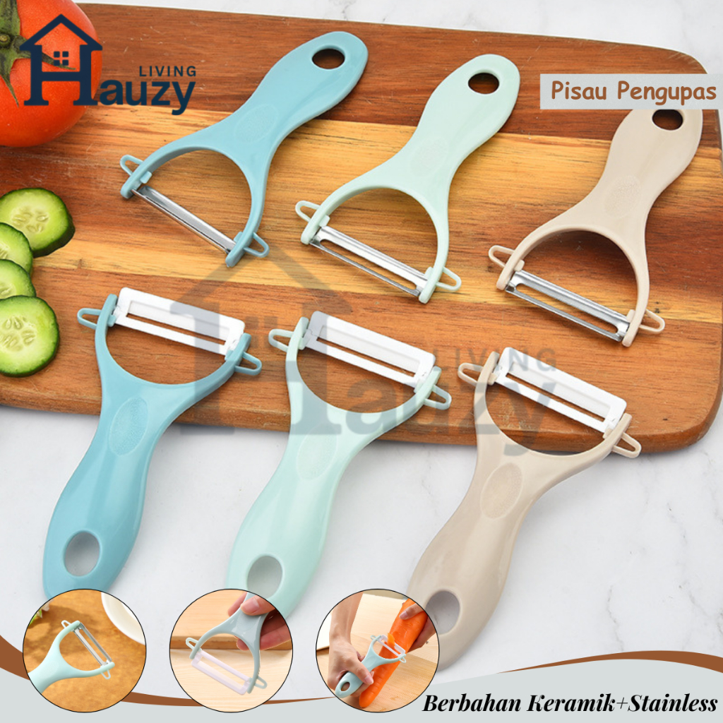 Hauzy - Pisau Pengupas Buah & Sayur Serbaguna Handle Nyaman, Mata Tajam/Peeler Sayur & Buah Warna Pastel Pengupas Keramik/Stainless Anti Karat