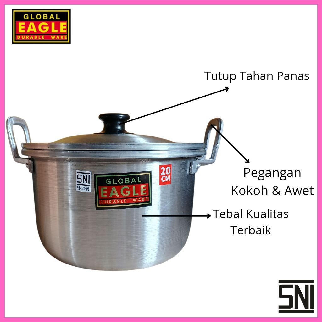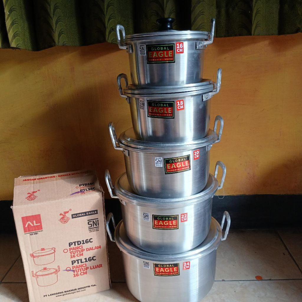 Panci Set Aluminium Stainless Merk Global Eagle 16 18 20 22 24cm/Panci Rebus Kuah air/Panci Masak