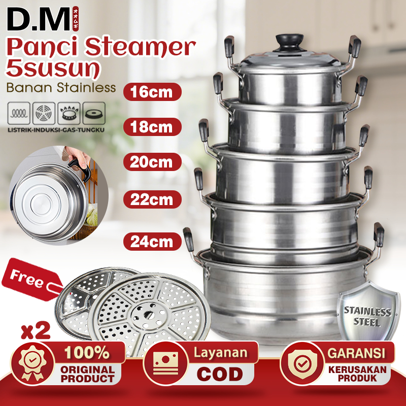 10in1 Panci Steamer Set Stainless isi 5 pcs Kukusan Panci Bahan Tebal