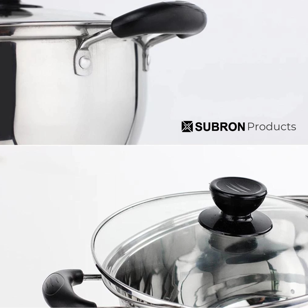 SUBRON Soup Pot 20cm 22cm 24cm 26cm Panci Sup Stainless Steel Tutup Kaca Premium Quality Sauce Anti Karat Serbaguna Kitchenware Kaca Transparan Alas Air Stainless Steel / Panci Sup Stainless Steel Pan