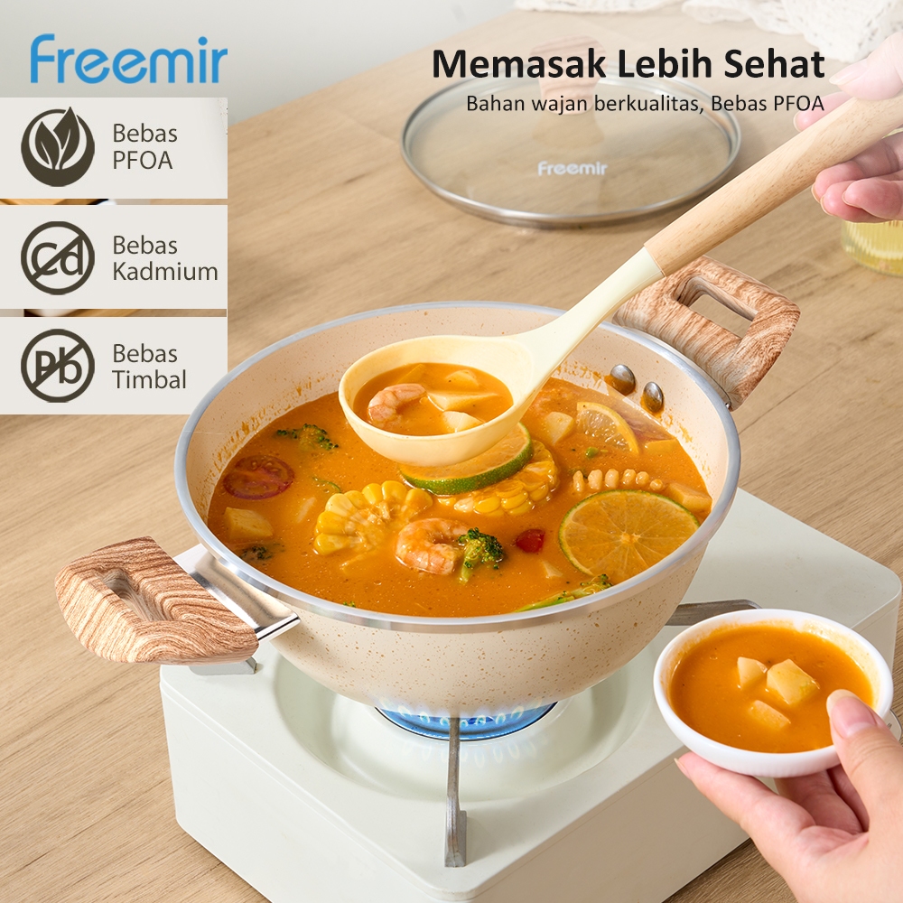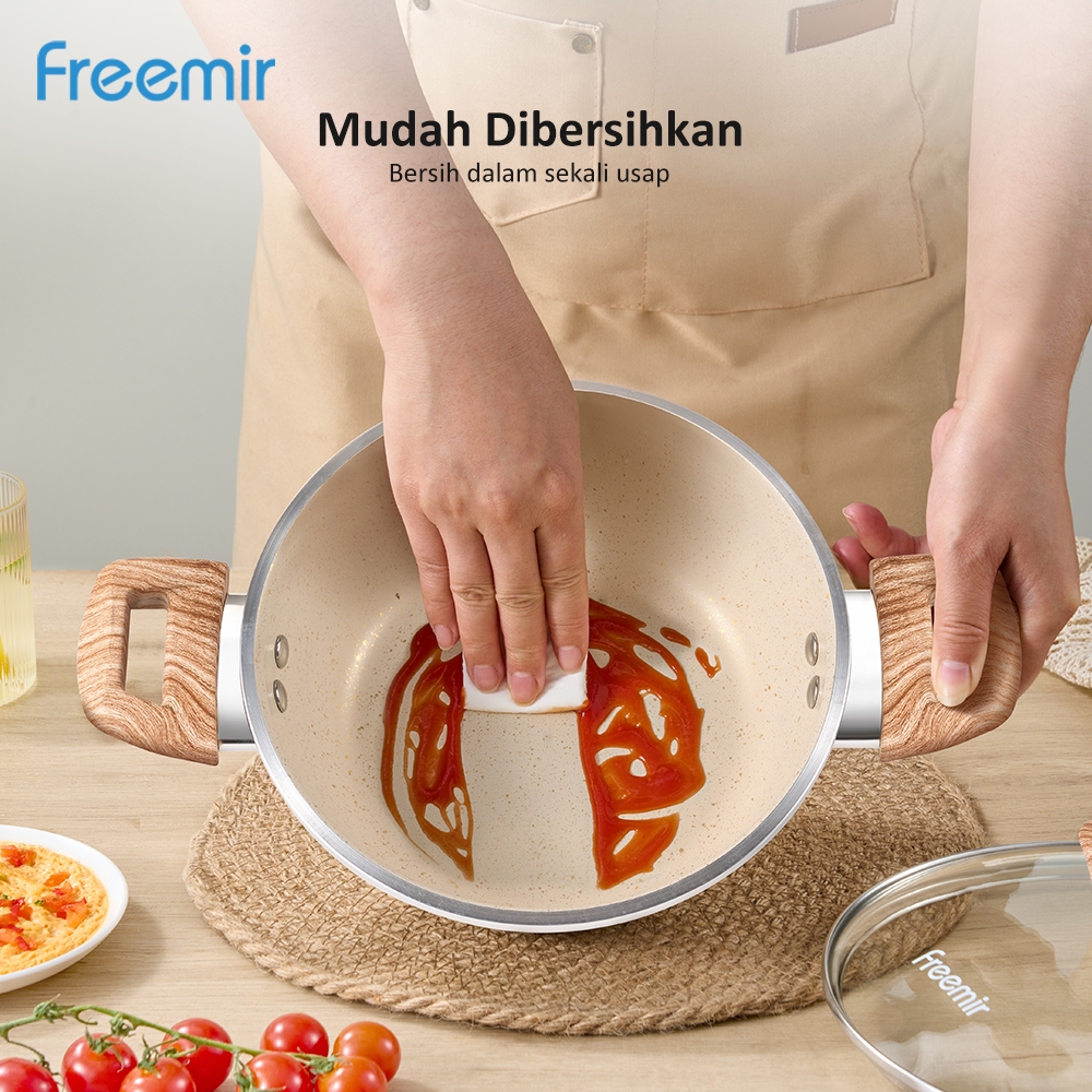 [OFFICIAL] freemir Wajan Beige 20 cm Kedalaman 7 cm Dengan Tutup Bahan Granit Anti Lengket Wajan Serbaguna