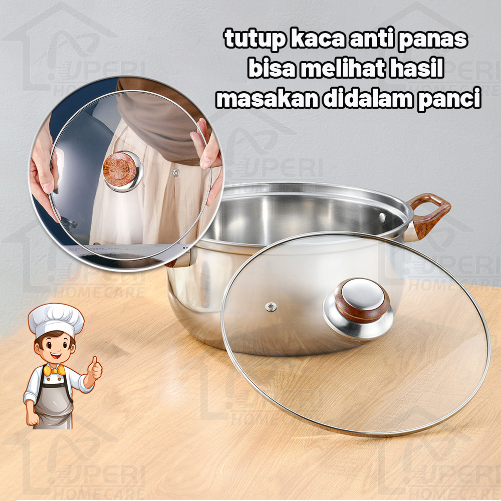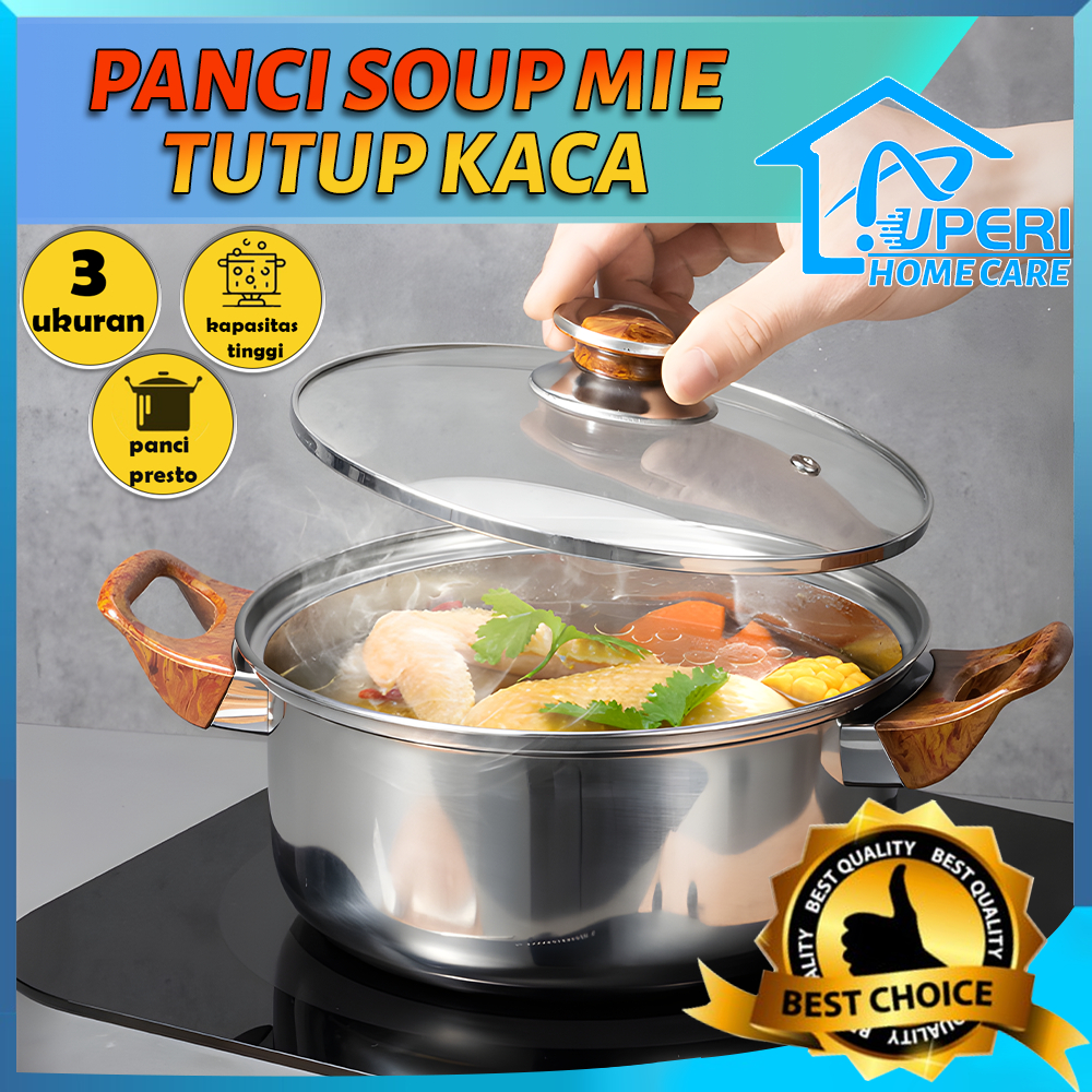 【UPERI】Panci sup sop soup pot stainless steel tutup kaca murah/Panci Sop Stainless Steel Soup Pot