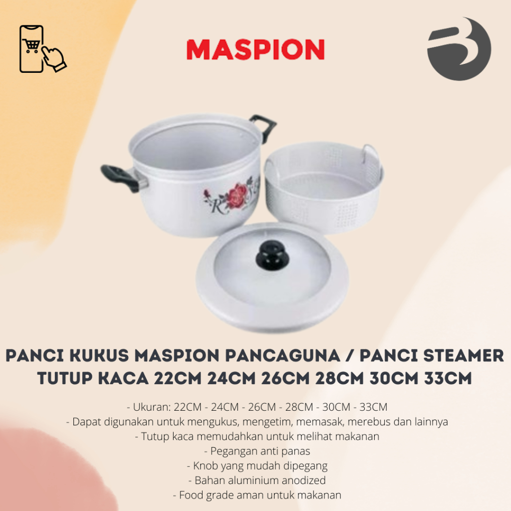 PANCI KUKUS MASPION PANCAGUNA / PANCI STEAMER TUTUP KACA 22CM 24CM 26CM 28CM 30CM 33CM