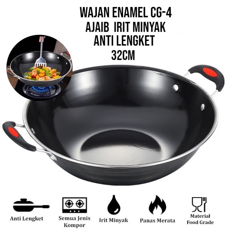 (JUMBO UK 34CM) WAJAN ENAMEL UK 34CM KUPING / GAGANG WAJAN KUPING ENAMEL HITAM ANTI LENGKET (TS)