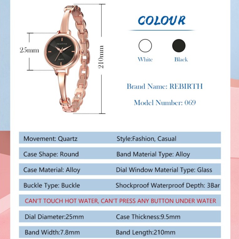REBIRTH JAM TANGAN WANITA ANTI AIR UNTUK BAJA PENUH GELANG DISPLAY KUARSA GELANG JAM TANGAN CEWEK ORIGINAL TERLARIS