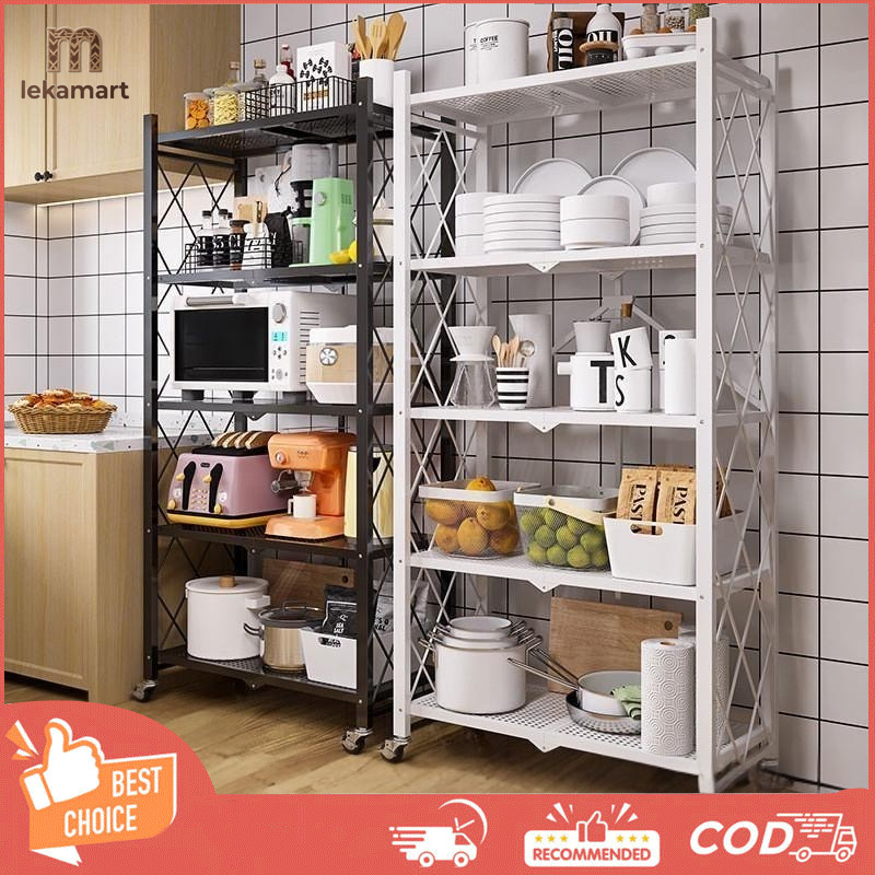 Rak Dapur Lipat Serbaguna Rak Besi Tingkat Rak Penyimpanan Susun Multi-fungsi-Rak Besi 3 4 5 Susun