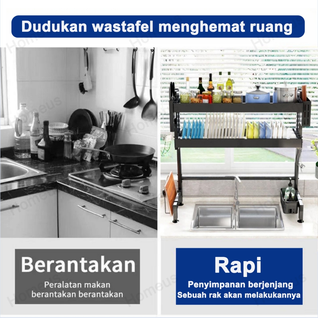 Homeus Rak Piring Rak Cuci Piring Wastafel Rak Dapur Anti Karat Stainless Steel Rak Piring Dengan Aksesoris