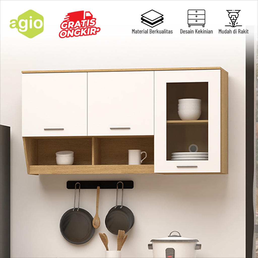 Oggi - Lemari Dinding Dapur / Kitchen Set 3 Pintu Minimalis / Rak Atas Dapur / Rak Dinding Dapur / Lemari Kabinet Dapur / Agio Rea Kitchen Wall 3D