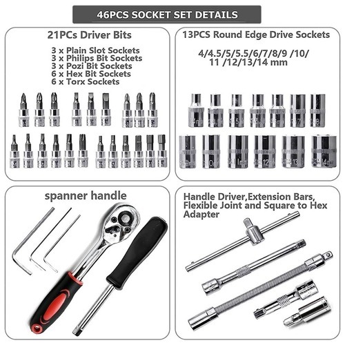 Kunci Shock Set 46 Pcs – Set Perkakas Lengkap untuk Mobil & Motor, Anti Karat