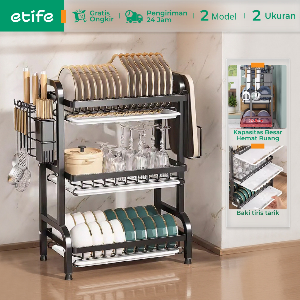 E-TIFE Rak Piring Dapur Penyimpanan Rak Pengering Piring Rak Piring dan Mangkuk