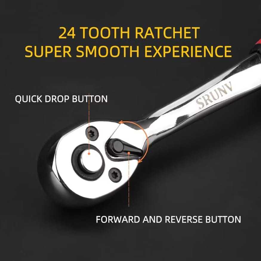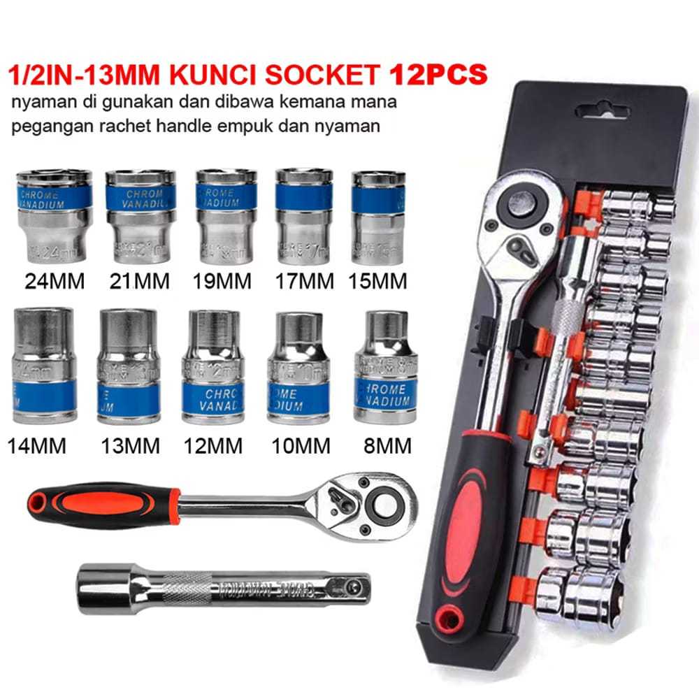 SAKUTO kunci shock set 12Pcs 4-24mm 1/2''-1/4'' kunci Socket Motor Lengkap Socket tool CR-V Kunci shock Wrench set lengk