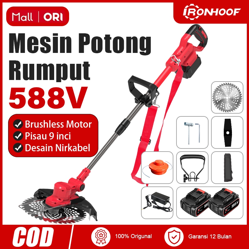 IRONHOOF 588V Mesin Potong Rumput Pemotong Rumput Listrik Pemangkas Rumput dengan Baterai Li-ion
