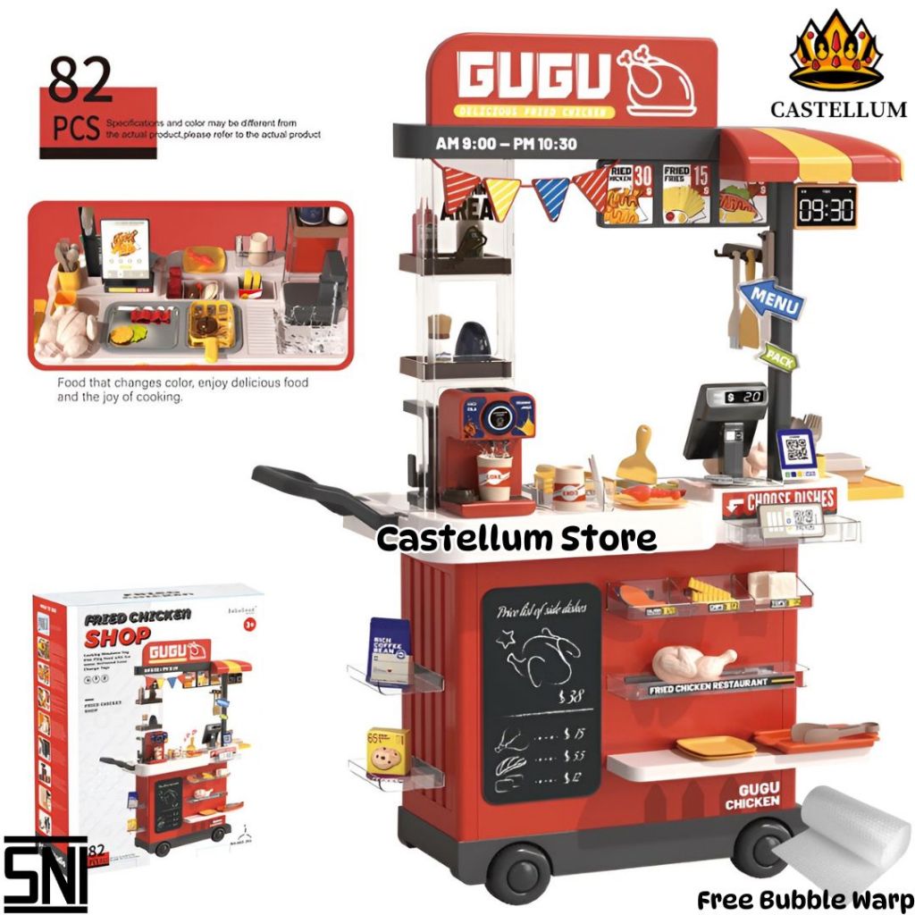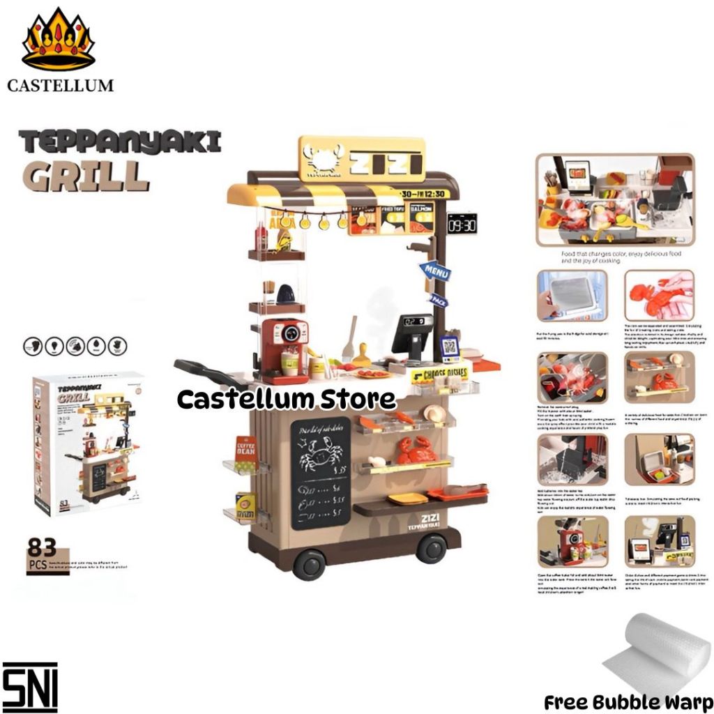 Mainan Masak-masakan Anak Set Food Cart Pretend Play Lengkap dengan Gerobak, Kasir, Mesin Kopi, Alat Masak & Perlengkapa