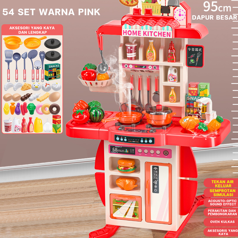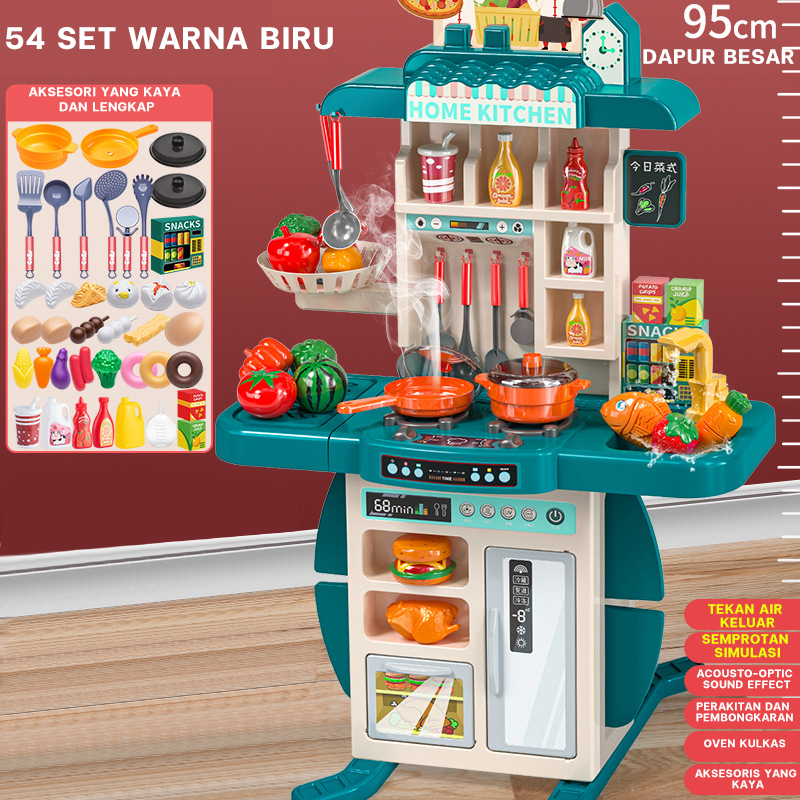 FUNTOY 86/54 PCS 95CM Mainan Kitchen Set Jumbo dengan Wastafel Mainan Anak Spraying Mist Kitchen