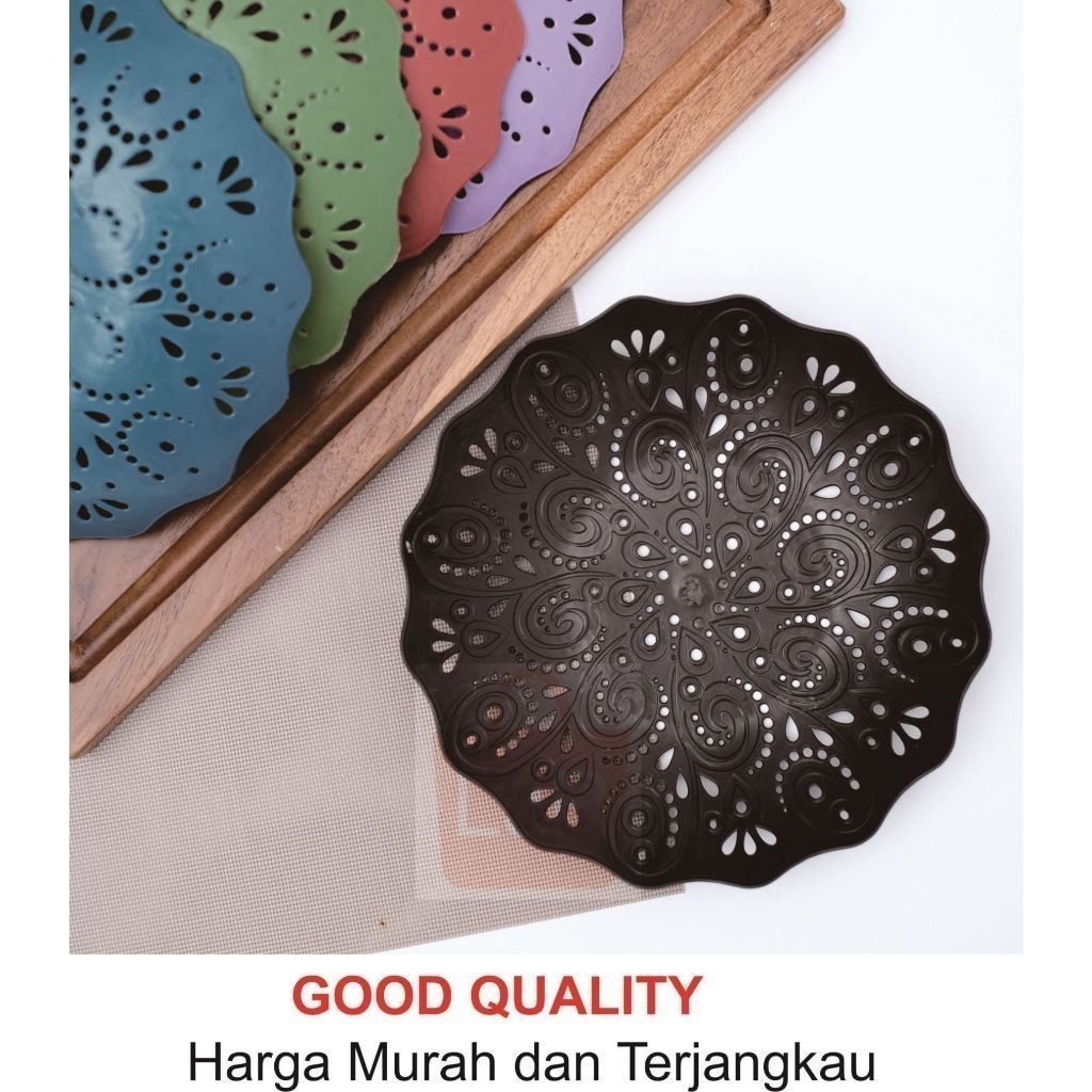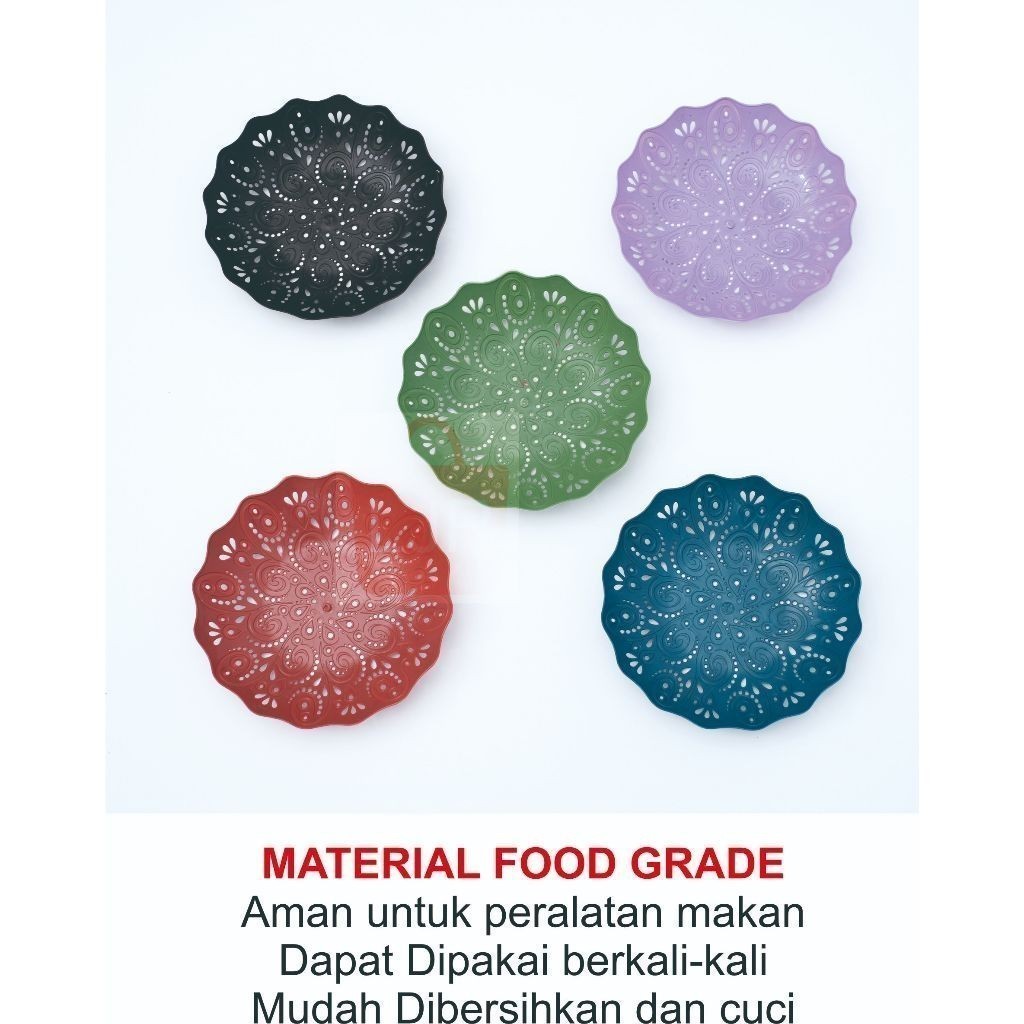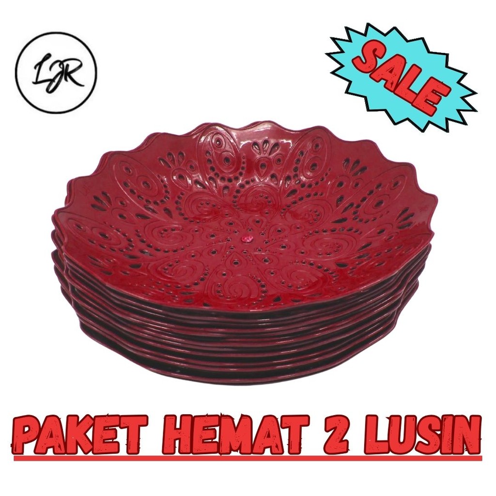 LJR Piring Rotan Plastik Cekung Motif New Bunga 21 cm Warna Merah - 2 Lusin (24Pcs)
