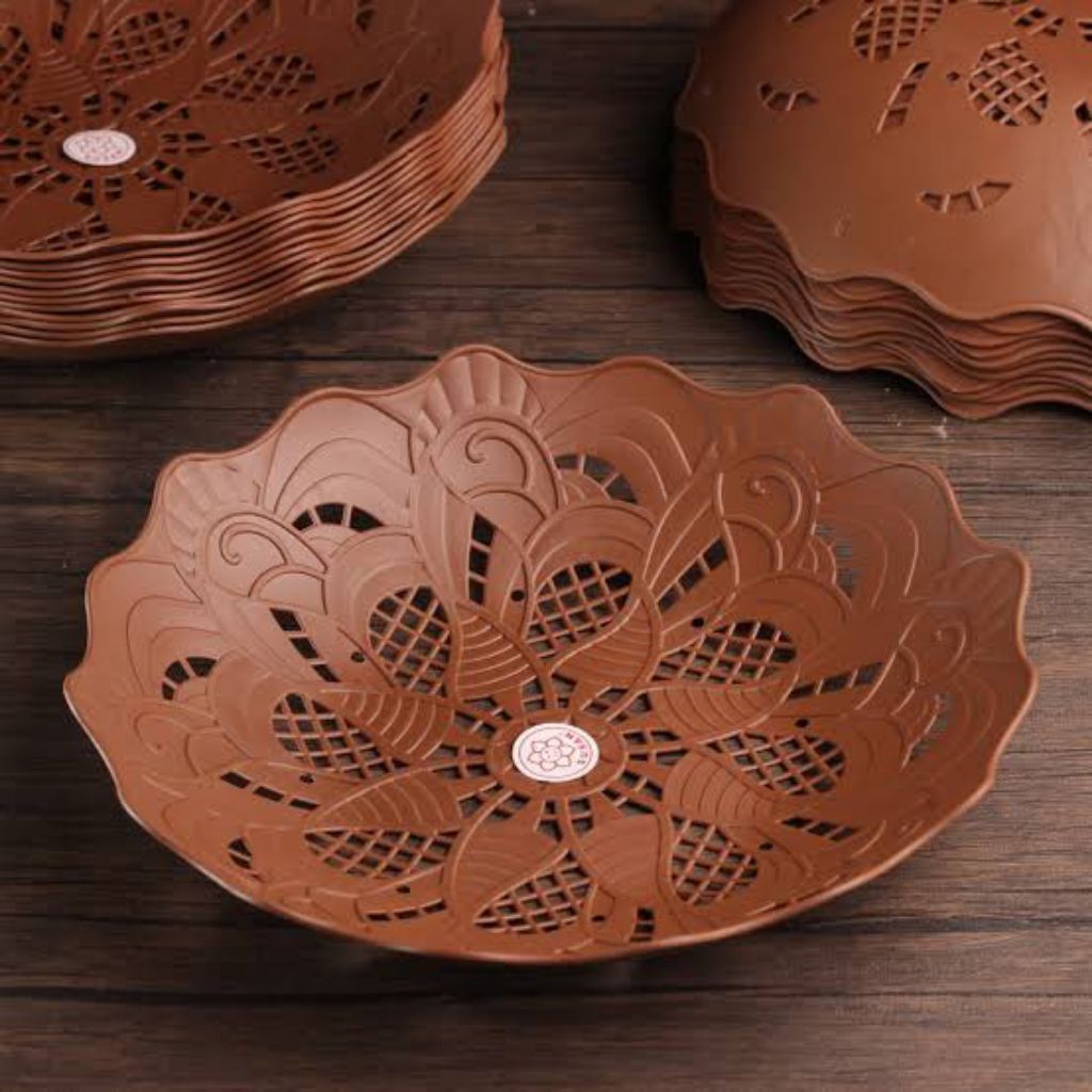 12Pcs PIRING ROTAN PLASTIK CEKUNG PIRING BUAH ANYAM PIRING CANTIK Coklat