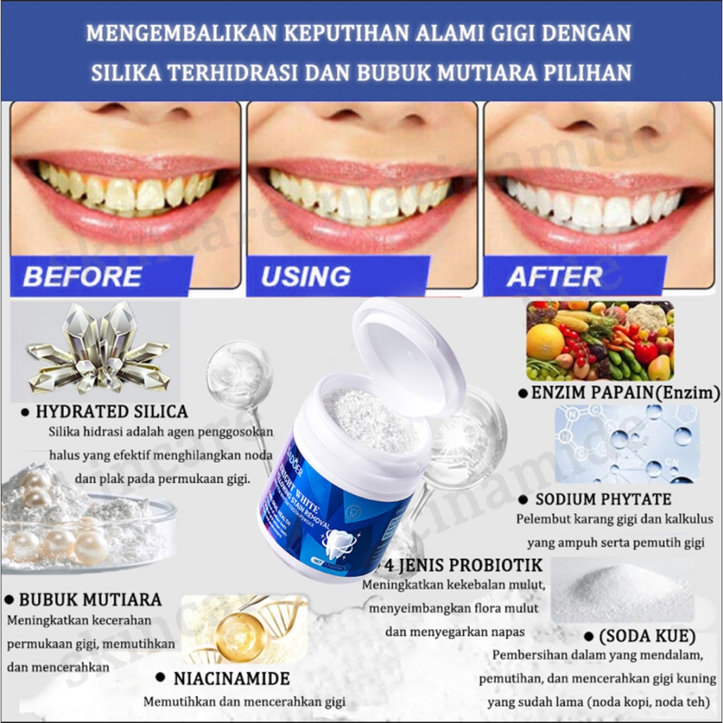 Pemutih gigi Teeth Whitening Powder Penghilang Karang Kuning Permanen 100% original Menghilangkan Noda Pemutih Gigi Bubu