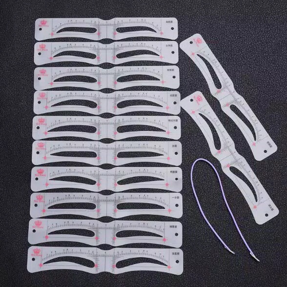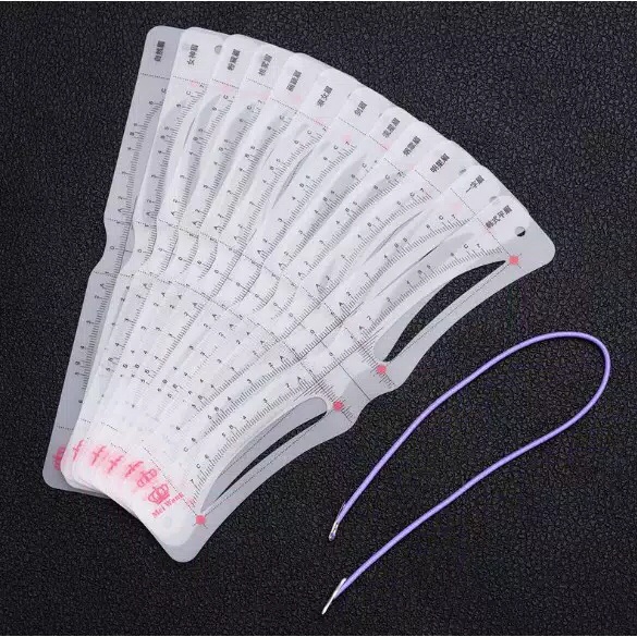 Eyebrow Ruler Set 12 pcs Cetakan Alis mata + Komplit Tali Elastis nya bisa di pakai berulang ulang Eyebrow Template