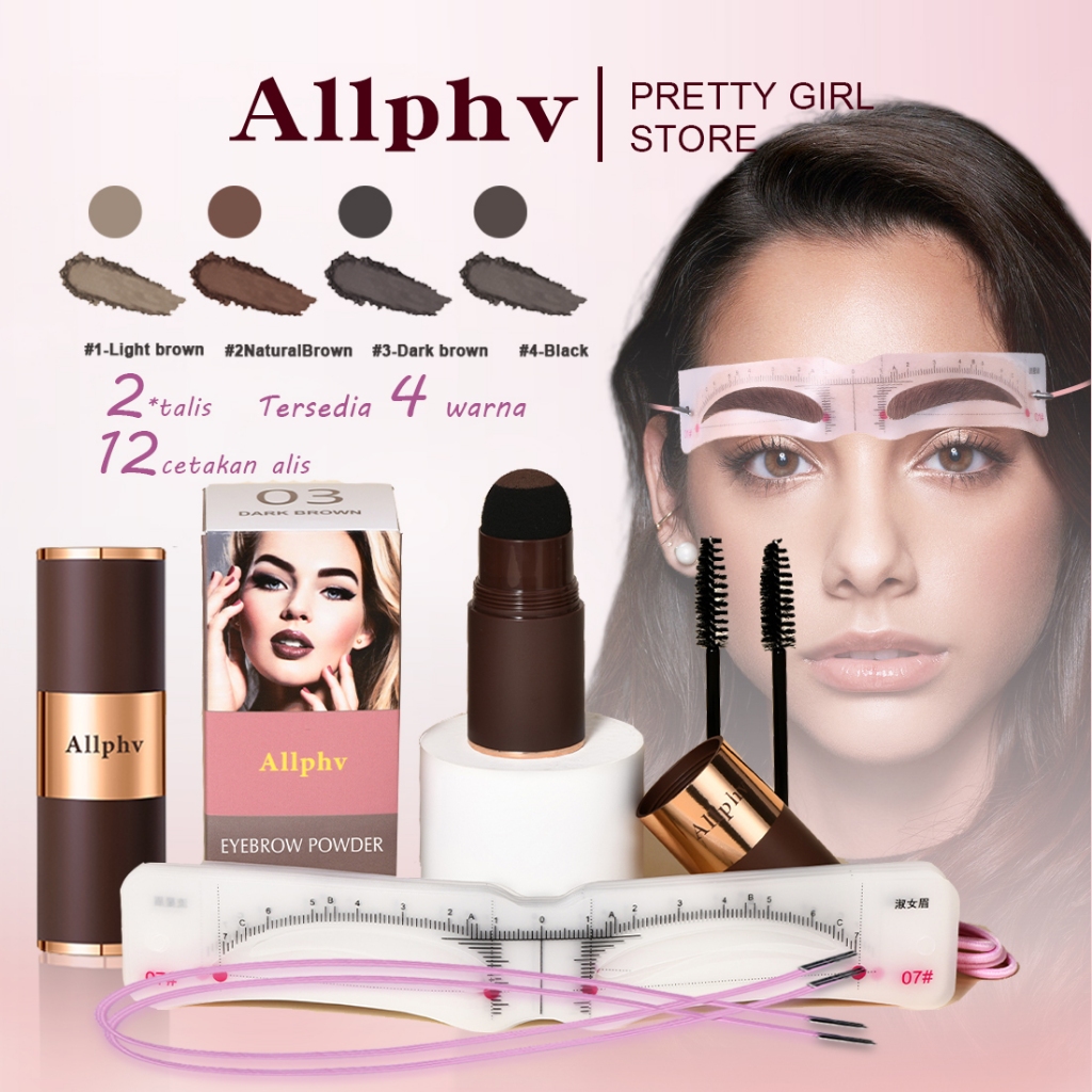 [BPOM] ALLPHV Eyebrow Kit Eyebrow Powder Waterproof Pencetak Alis Tiny Case Easy Carry Daily Use GRATIS 12 Cetak Alis