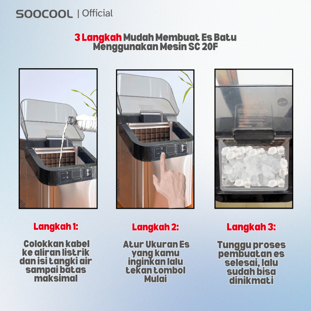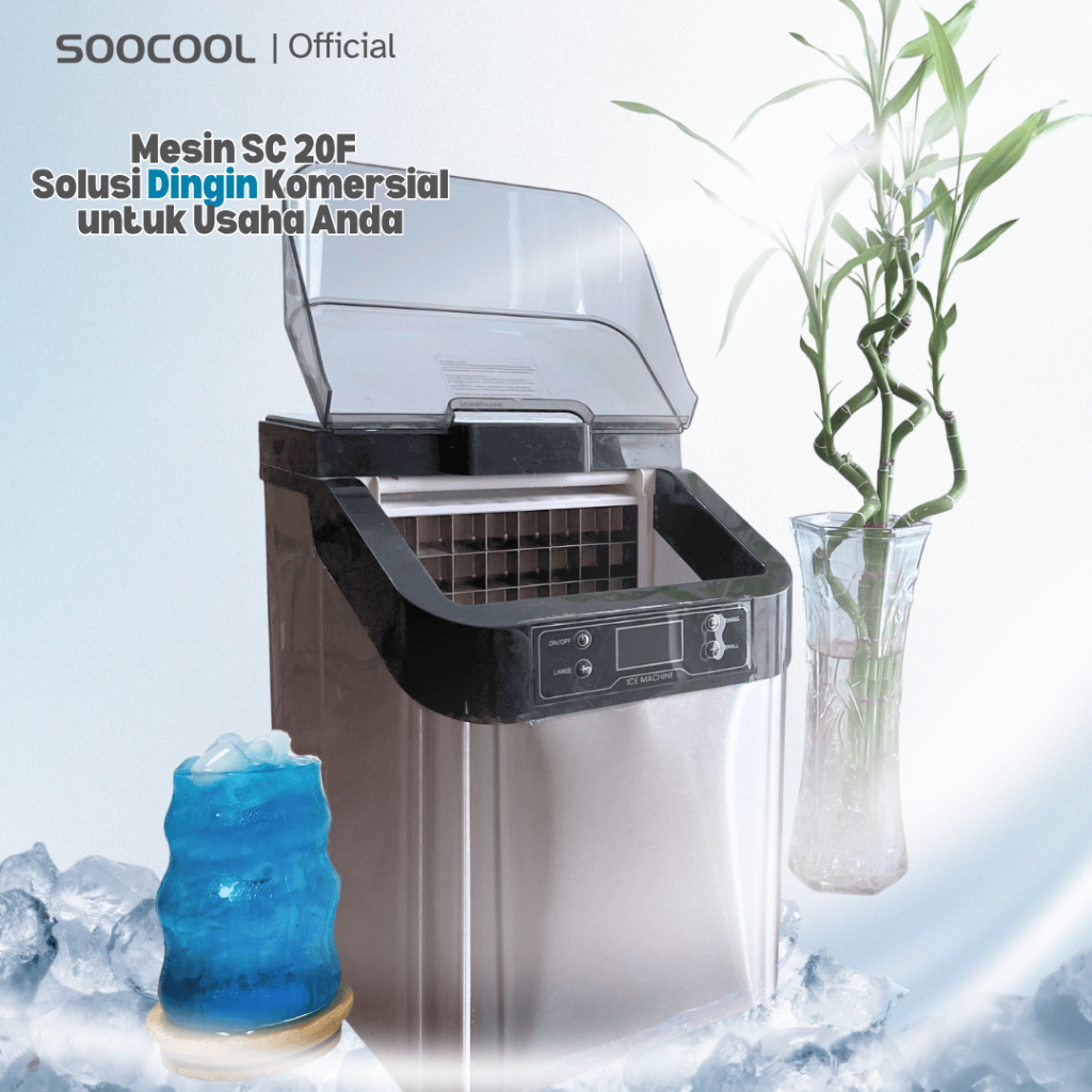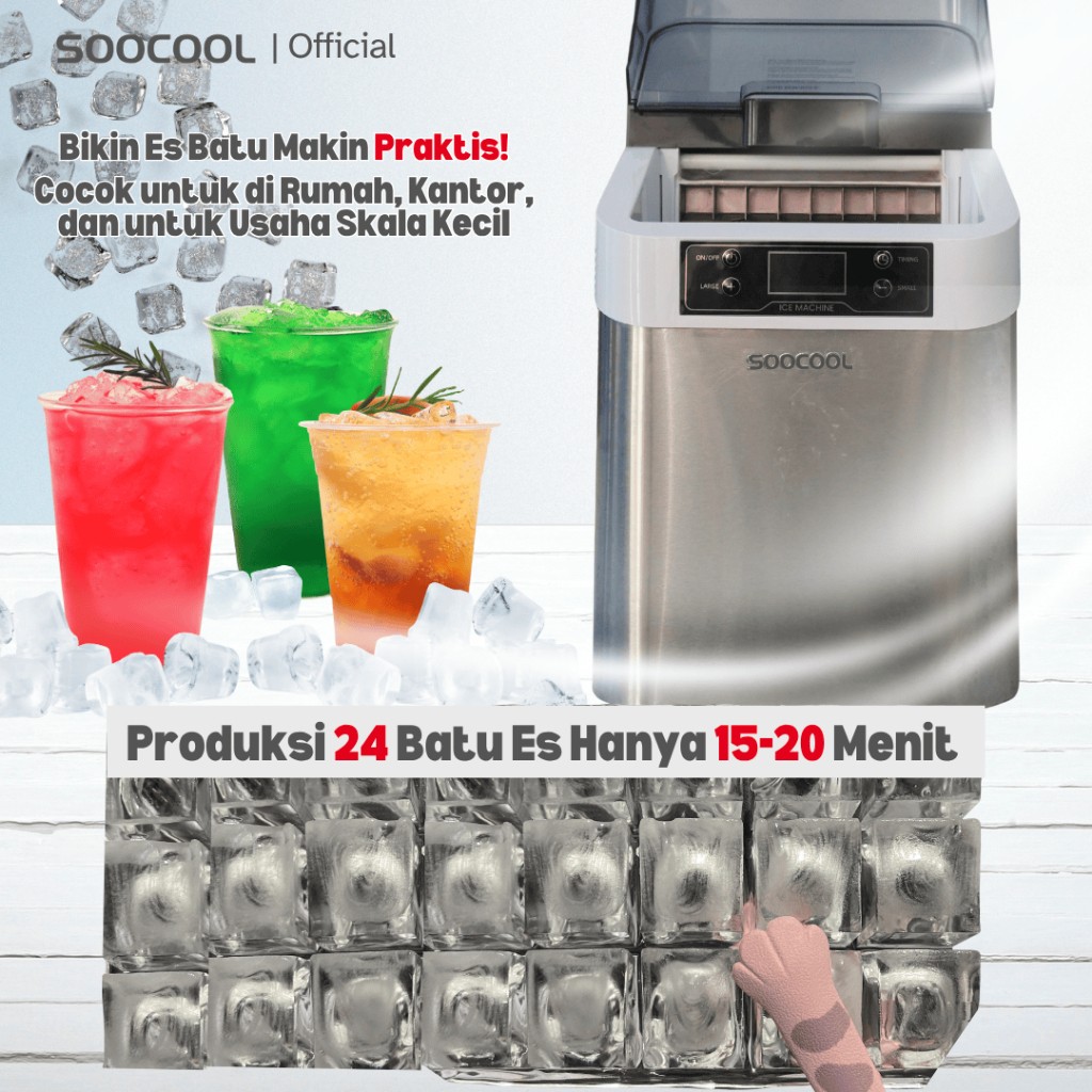 Soocool Sc-20F Ice Maker Portable, Mesin Pembuat Es Batu 24Kg / Hari Praktis & Cepat