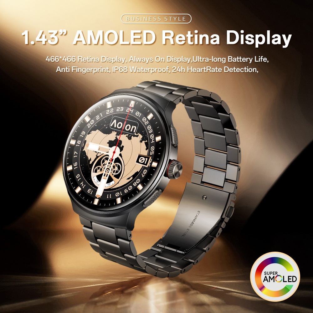 OFFICIAL STORE 【AGPS】Aolon Prime 3 Jam Smartwatch Pria 46mm Amoled Cover Lock Metal jam tangan smartwatch original watch