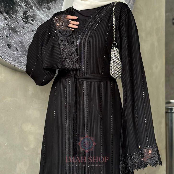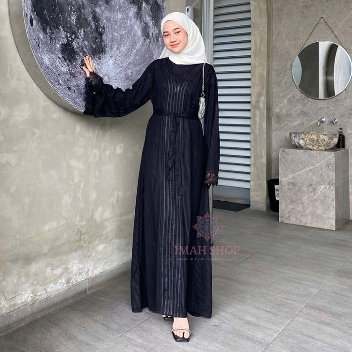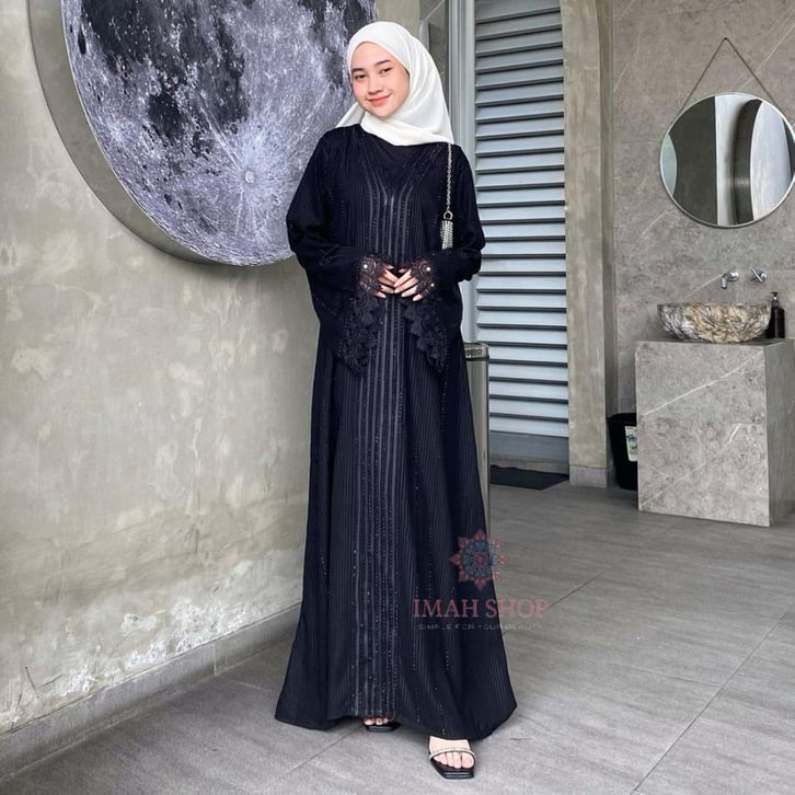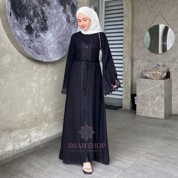 Abaya Hitam Turkey Gamis Syari Muslimah Bahan Jetblack Hitam Kombinasi Renda Imah Shop Dress Arab Saudi 951