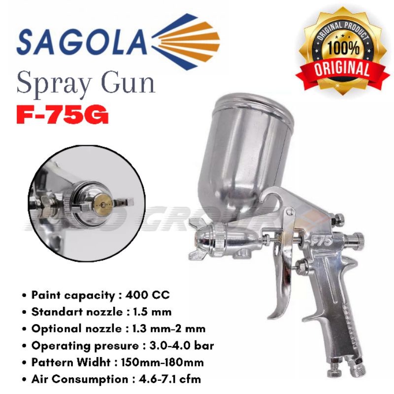 MUMPUNG READY SAGOLA Spray Gun F75 Semprotan Cat Kompresor Tabung Atas 400ml Semprot Angin Cet Minyak Mobil Motor ART