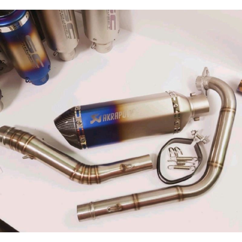 KNALPOT IMPORT TAIWAN AKRAPOVIC TITAN HD BLUE NGEBAS cocok R15V3 OLD V2 V3 V4 MT 15 VIXION XABRE TIGER Megapro GLpro CBR