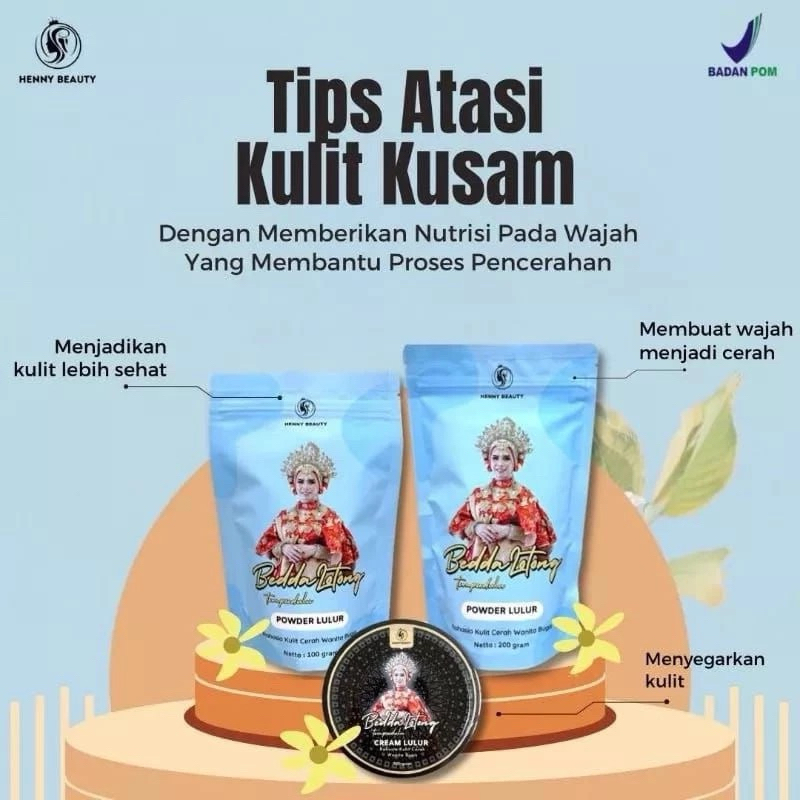 Bedda Lotong Bubuk Henny beauty Bedda lotong Pencerah pemutih badan Bpom
