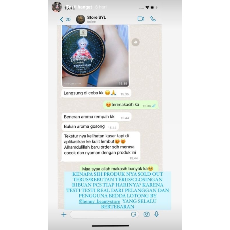 Bedda lotong henny beauty (lulur cream 2 pcs 300gram)
