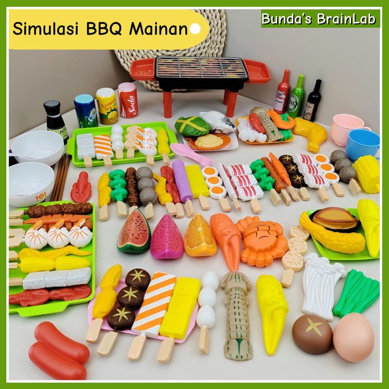 Mainan Masak Masakan Anak Mainan edukatif Hadiah Memanggang BBQ Makanan simulasi dapur permainan yang menarik Set