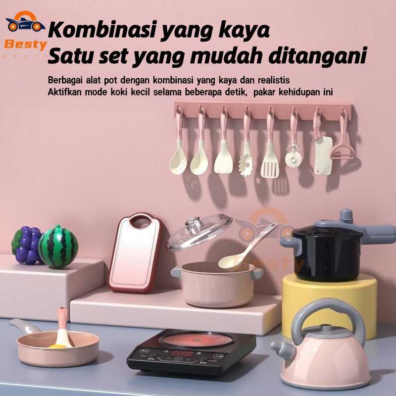 Besty 86Pcs Mainan Dapur Simulasi Mainan Mak Dapur Mainan Buah Potong Dapur Mainan Pendidikan Anak Memotong Sayuran