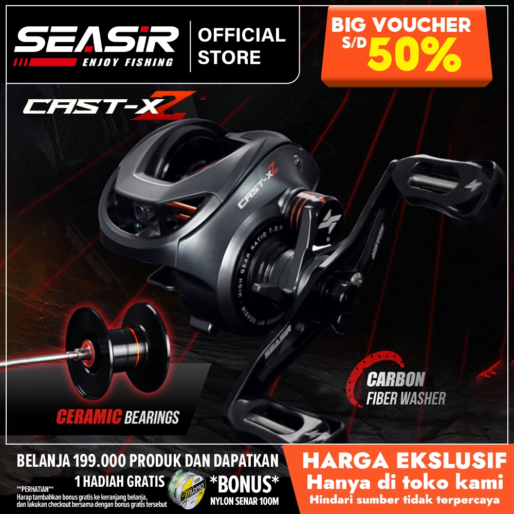 SEASIR CAST X2 Reel BC Baitcasting Reel Pancing, 1 Spool Aluminium, Ceramic Bearings 6+1BB, Rasio Gigi 7.3:1