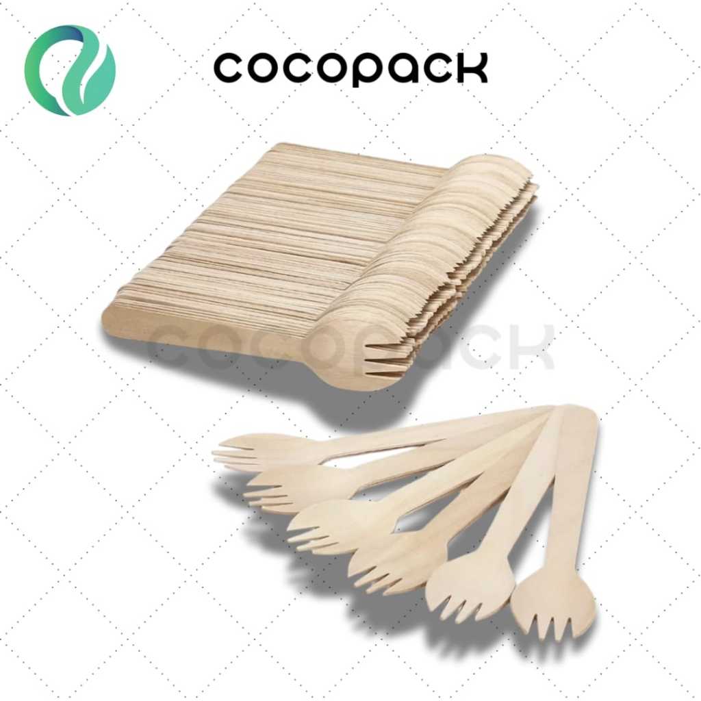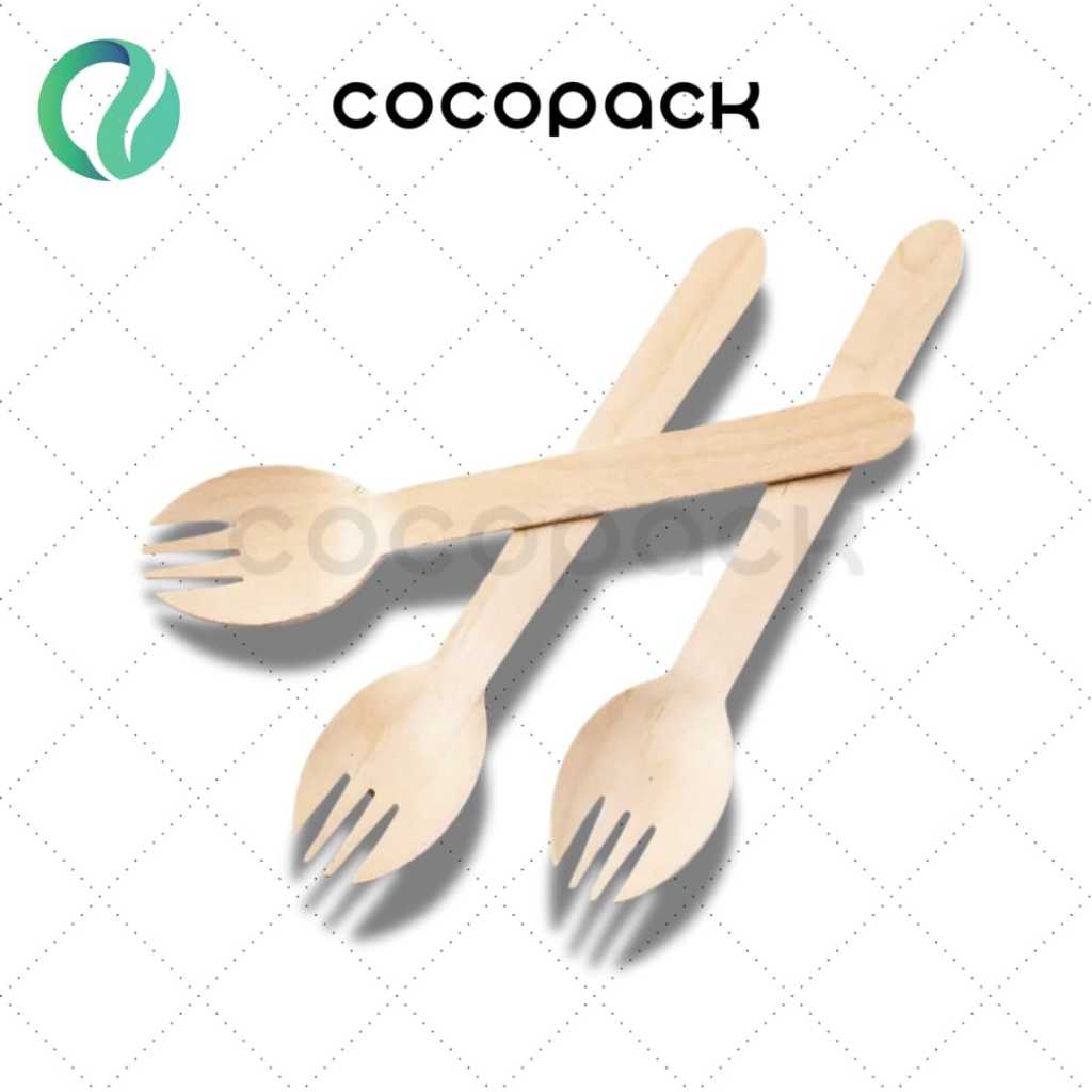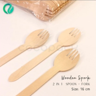 Garpu Sendok Kayu 2in1 16cm Sekali Pakai 100 PCS