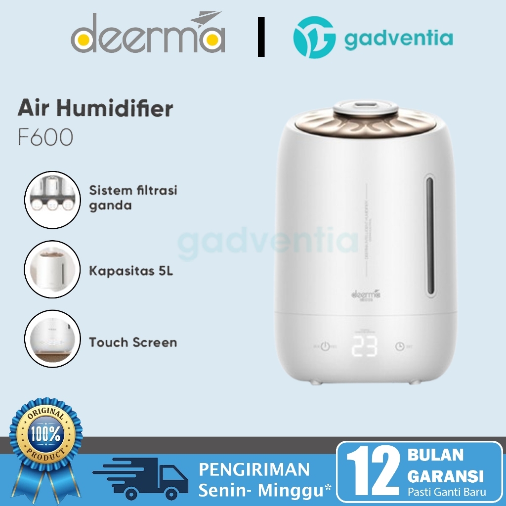 Deerma F600 Air Humidifier Ultrasonic 5L Touch Screen Pelembab Udara Ran Kantor Kamar Oil Aromaterapi