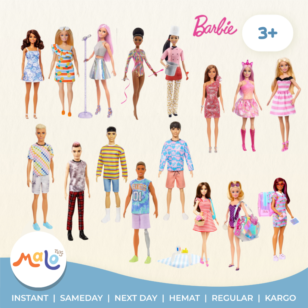 Pasta Chef, Pop Singer, Rhythmic Gymnast, Nurse, Hair Stylist, Make Up Artist, Pet Photographer, Scientist, Fashion - Blue, Fashion - Pink, Rhythmic Gymnast 2, Unicorn - Blue, Unicorn - Pink, Unicorn - Green, Pizza Delivery, 65th Anniversary, Stacie Rescue, Stacie Candy Stand, Floral Dress, Pineapple Dress, Spa Day, Paris Travel, Set Animals, Ken - 174, Ken - 175, Ken - 176, Ken - 184, Ken - 204, Ken - 211, Ken - 212, Ken - 219, Ken - 220, Chelsea - Heart, Chelsea - Romper, Chelsea - Plaid, Chelsea - Skoliosis, Chelsea - Purple, Chelsea - Floral, Swimsuit Outfit, School Outfit, Beach, Wild Life, Roller Skate, Evening Party, A, B, C