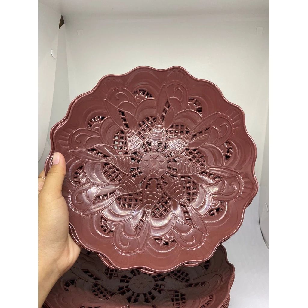 12 PCS Piring Rotan Plastik New Motif Bunga Untuk Buah