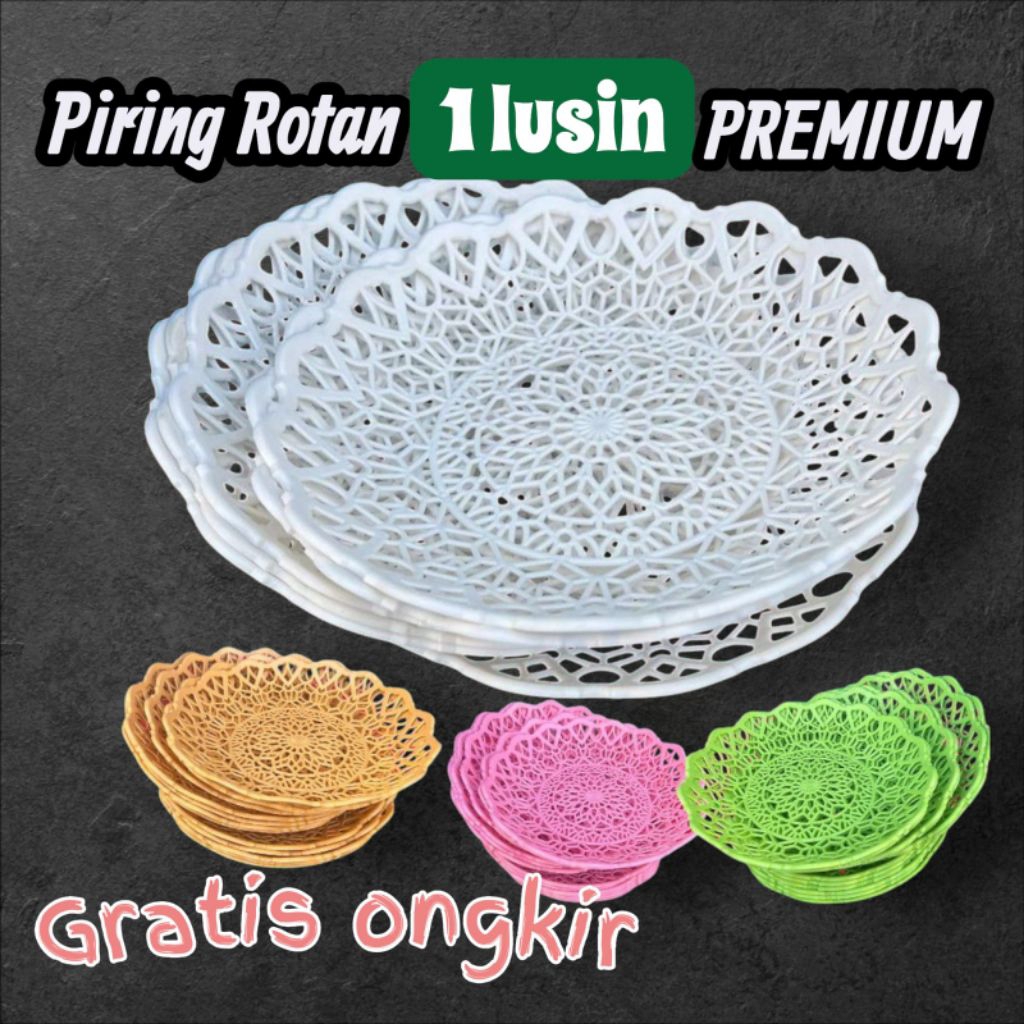 Piring rotan plastik diamond 12 pcs premium tebal tidak lentur