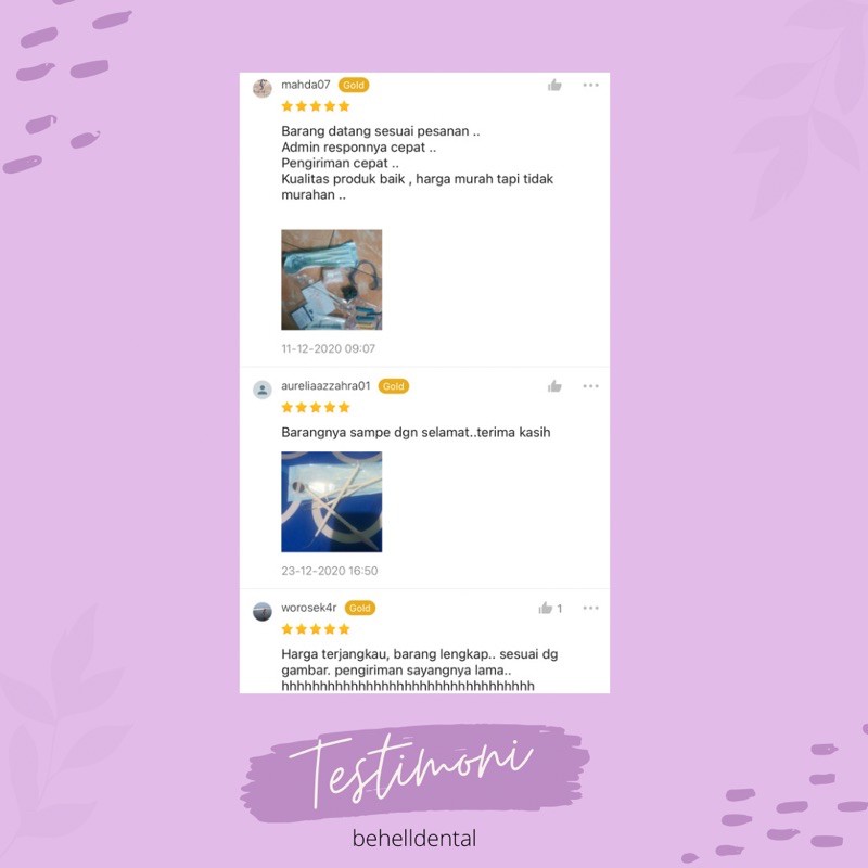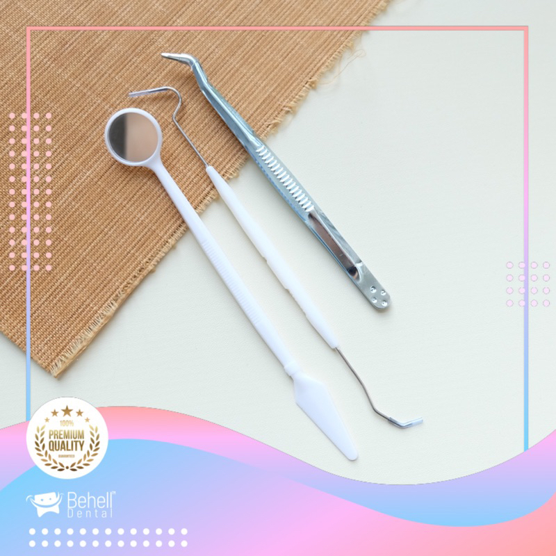 Ori 1 Set Isi 3 | Alat Pembersih Plak Karang Gigi / Instrument Disposable 3 Sonde Karet Behel Pinset Kaca Mulut 8000