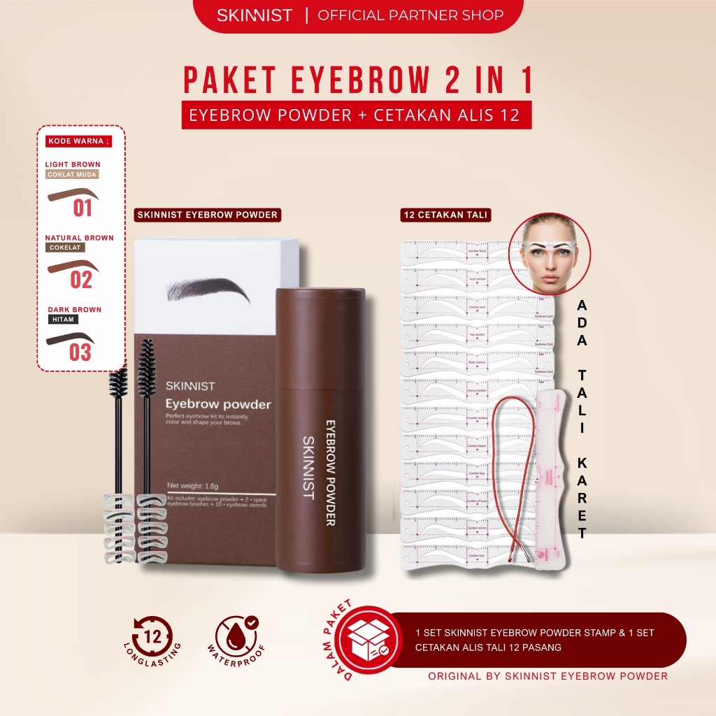 [ PAKET EYEBROW 2in1 ] Paket Eyebrow 2in1 SKINNIST Eyebrow Powder Stamp dan Cetakan Alis Tali 12 Tahan Lama