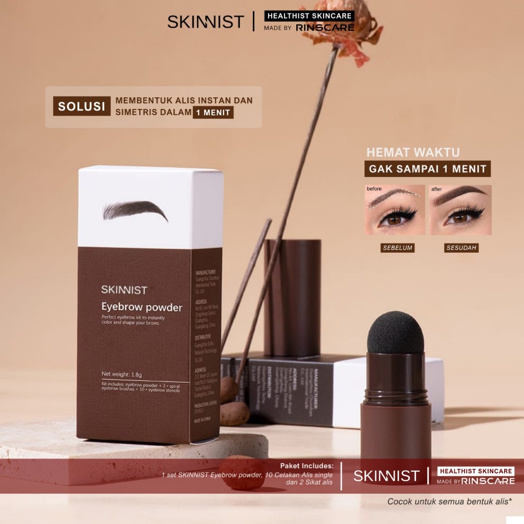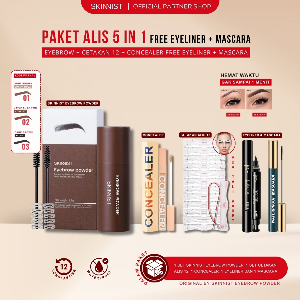 PAKET ALIS 5in1 Bonus Mascara dan Eyeliner Stamp lengkap SKINNIST Eyebrow Powder Stamp, 12 Cetakan Alis, Concealer Cocok
