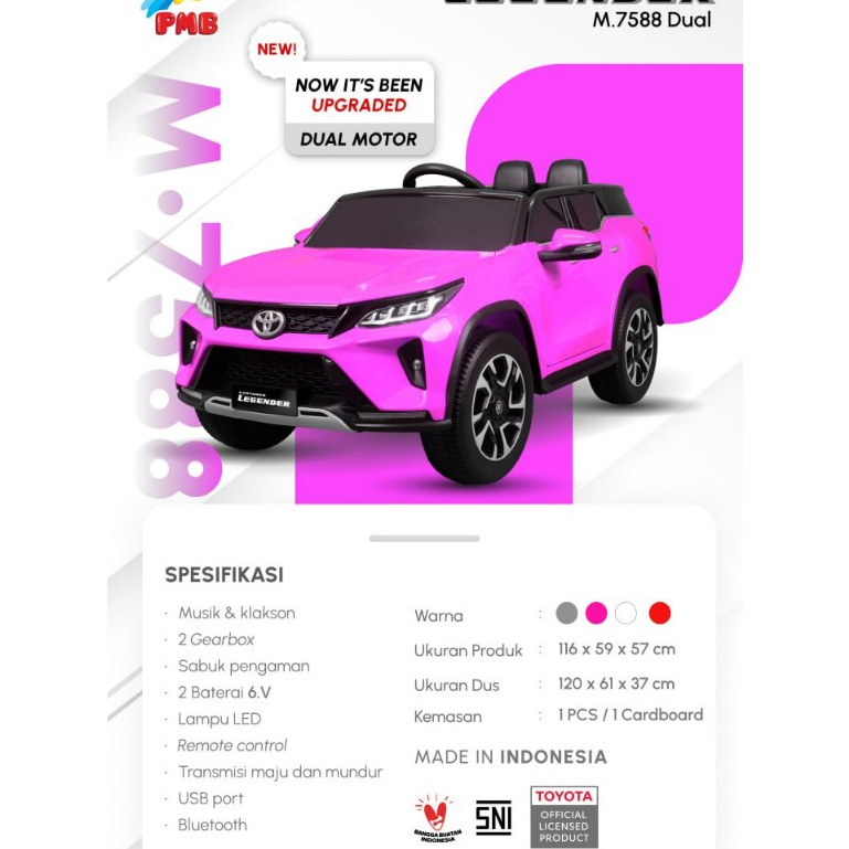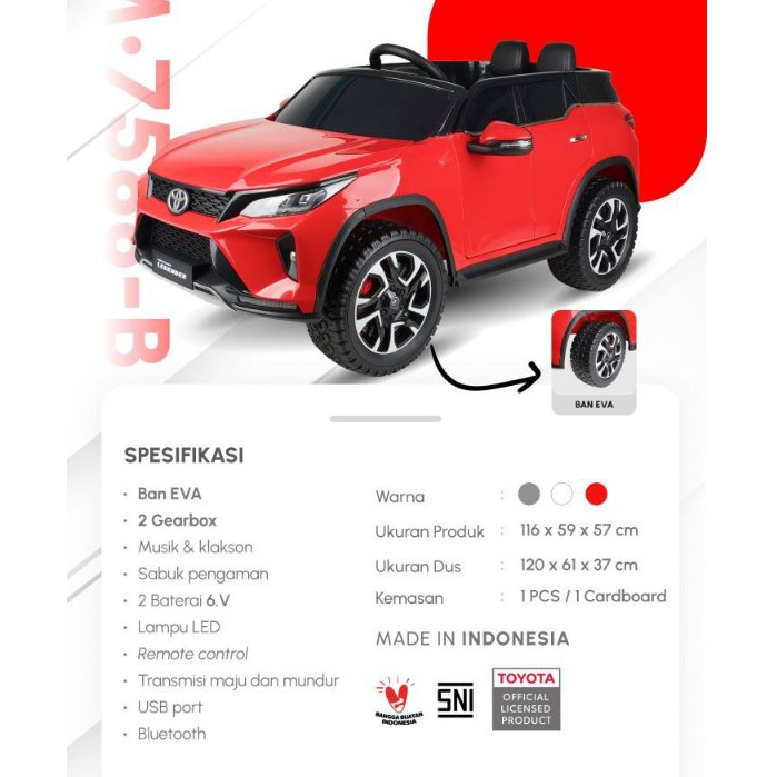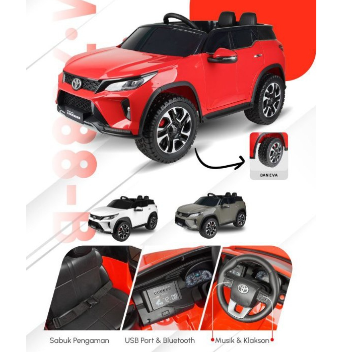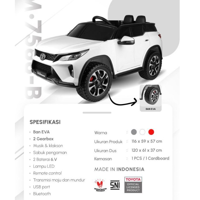 Mobil Aki Anak FORTUNER TOYOTA Official Licensed Ban KARET EVA ORIGINAL PMB M7588 B Bisa Remote SNI