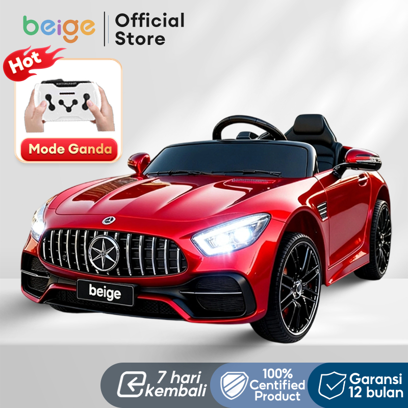 BEIGE Mobil Aki Anak Remote Control Bisa Aplikasi HP 100KG Mainan Mobil Listrik Anak