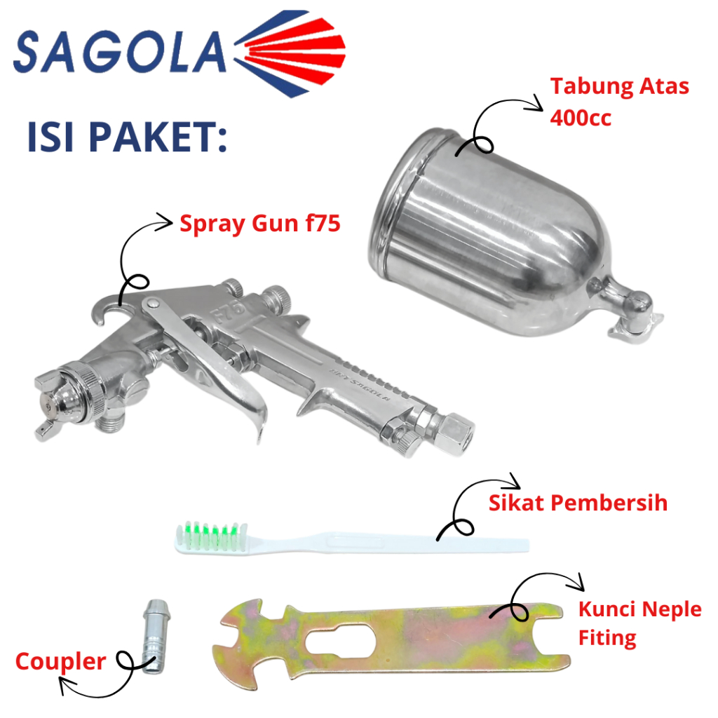 TDT - SAGOLA Spray Gun Tabung Atas F75 400 ml Alat Semprotan Cat Paint Gun Air Spray Gun F-75 400cc
