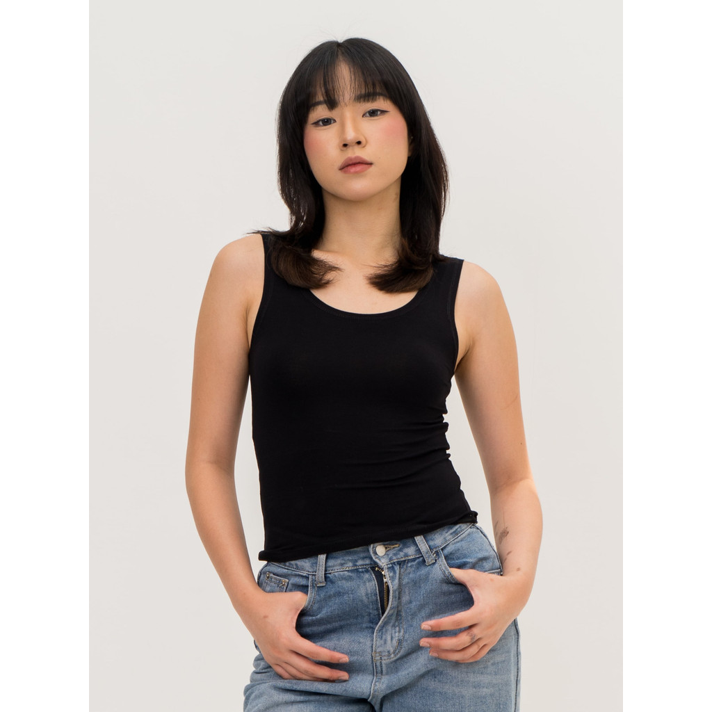 ALURE 02 | Sleeveless Tank Tanktop Kaos Ribbed Knit Long Crop Top Tencel Top