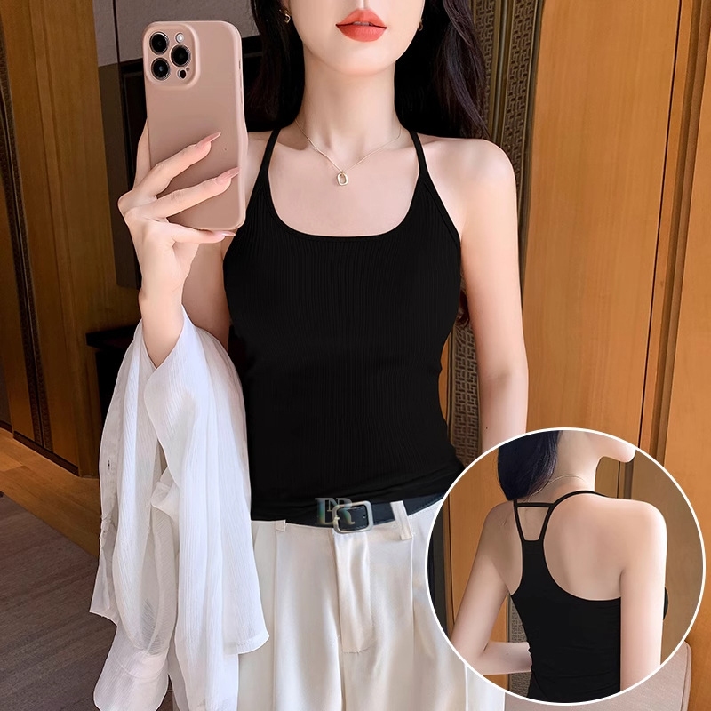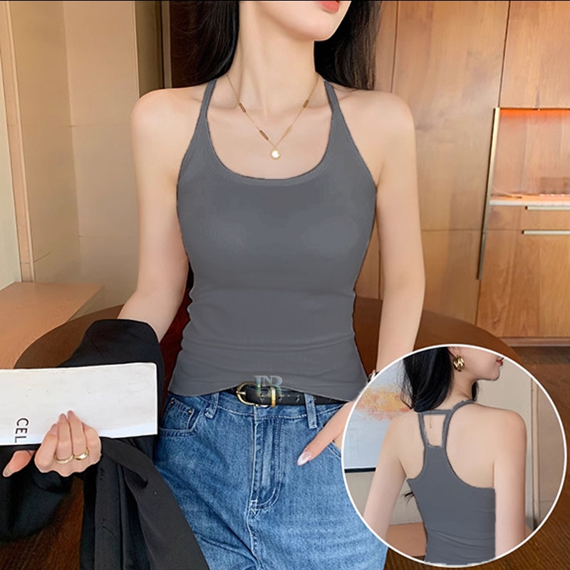 LNR Shop Tanktop el Backless Belakang dengan Pad Cup Busa Bahan Cotton Premium Import Kamisol Crop Top Menampilkan Pungg