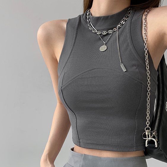 [MISSHONEY]Turtle Neck Sleeveless Cropped Tank Top 7115 (S/M/L/XL)