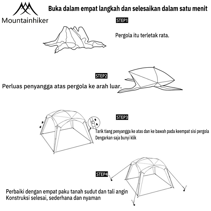 Mountainhiker Tenda Dome Otomatis Pergola 6-7P Tenda Kanopi Camping Canopy Outdoor Pu3000Mm+