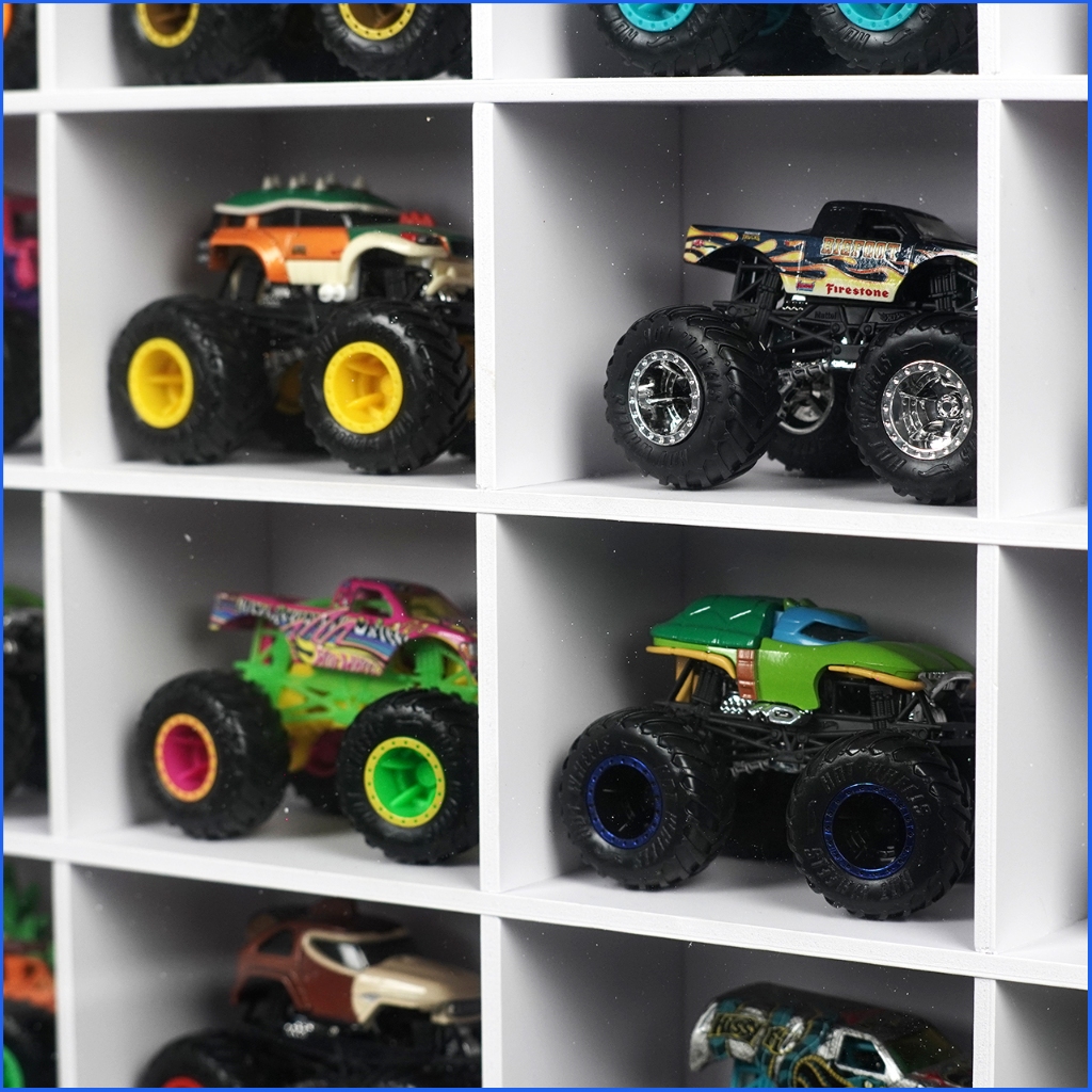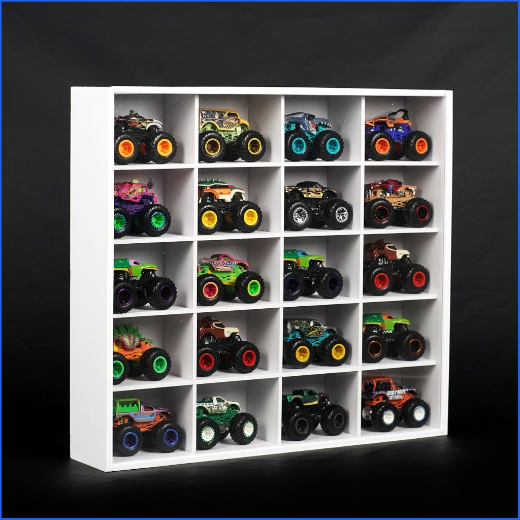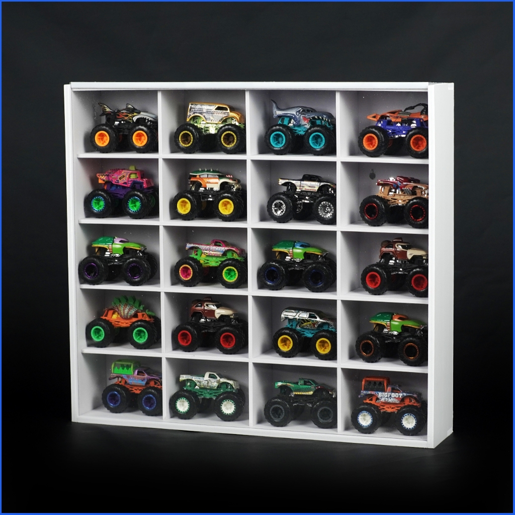 Rak Hotwheels Monster Truck Isi 20 Display Pajangan Monster Truck Dinding Bahan PVC