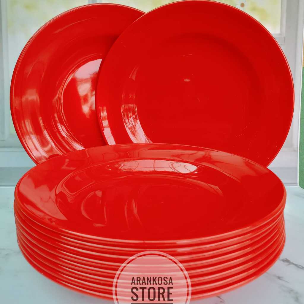 Piring PAKET HEMAT 12PCS {SATU LUSIN} PIRING MAKAN MELAMIN BULAT TEBAL CEKUNG 23CM